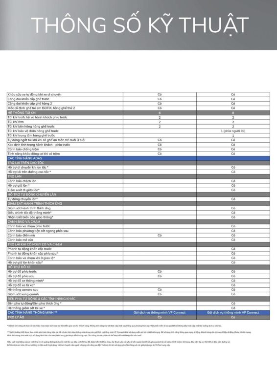 Tính năng an toàn trên VinFast VF7 đều đáp ứng đủ tiêu chuẩn 5 sao của Euro NCAP, NHTSA và ASEAN NCAP. Xe được trang bị tới 11 túi khí cùng gói công nghệ hỗ trợ lái nâng cao, hỗ trợ di chuyển khi tắc đường, hỗ trợ lái đường cao tốc, tự động chuyển làn, hỗ trợ đỗ xe an toàn phần, triệu tập xe thông minh.